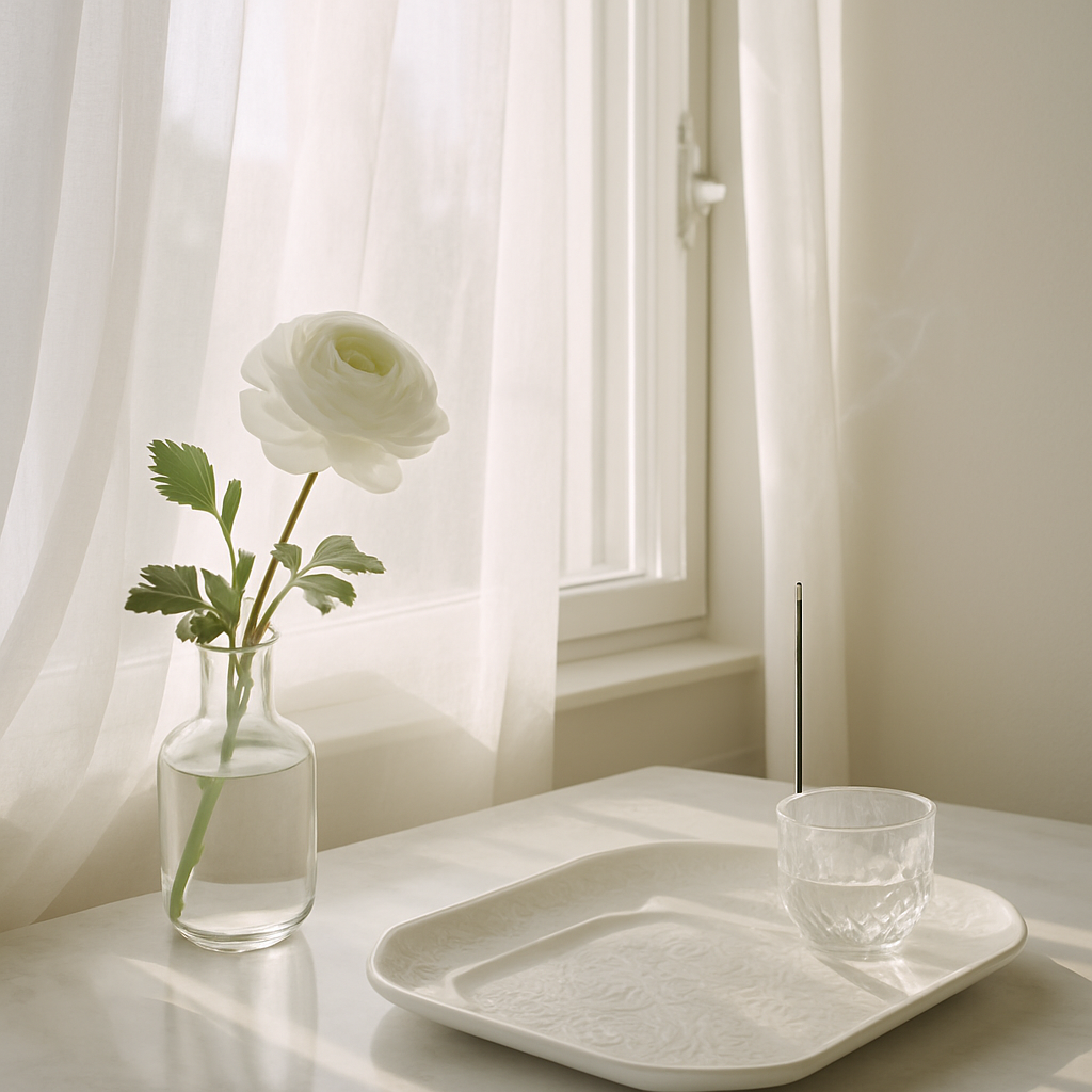 部屋に漂う白い光と香りの余白が、